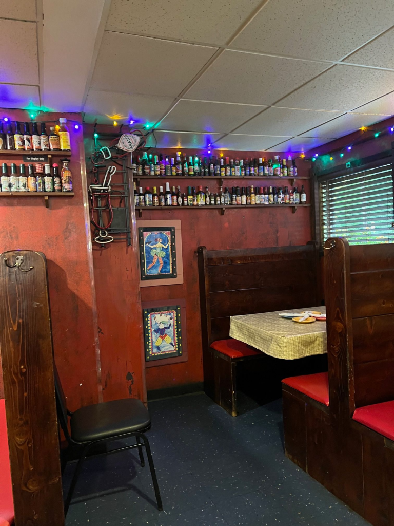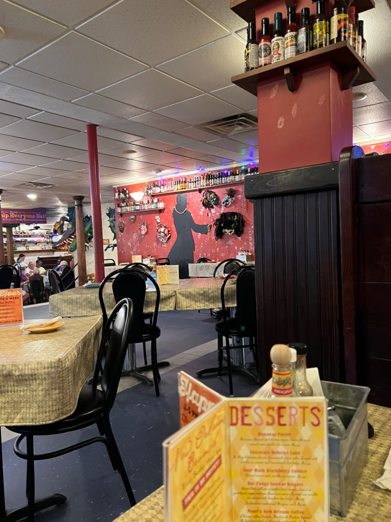 As the name suggests, the vibe at Pearl’s is very New Orleans-inspired. Hot sauce bottles and Mardi Gras decorations are everywhere. My favorite detail, though, is the zydeco music playing through the speakers. It sets the tone perfectly.