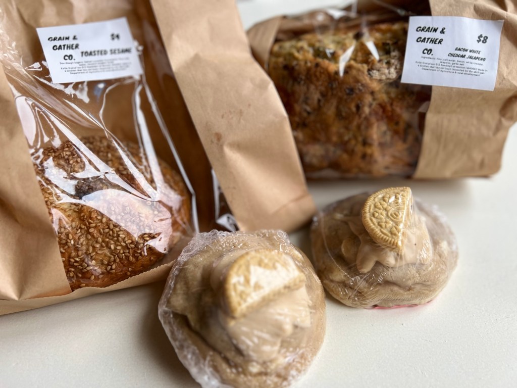 Our first trip (yes, we’ve gone more than once) to Your Daily Crumb yielded a plethora of goodness! A jalapeño and bacon sourdough bread that Chuck swears when toasted and paired with an egg tastes just like eggs and bacon! Soft but chewy bagels unbothered by preservatives. My personal fave was the apple cider donut cookies. Honestly, I went to the stand hoping for something chocolate and “settled” for this cookie instead. The flavor and texture volleyed between a cider donut and a slice of apple pie. It was sooooooo good!