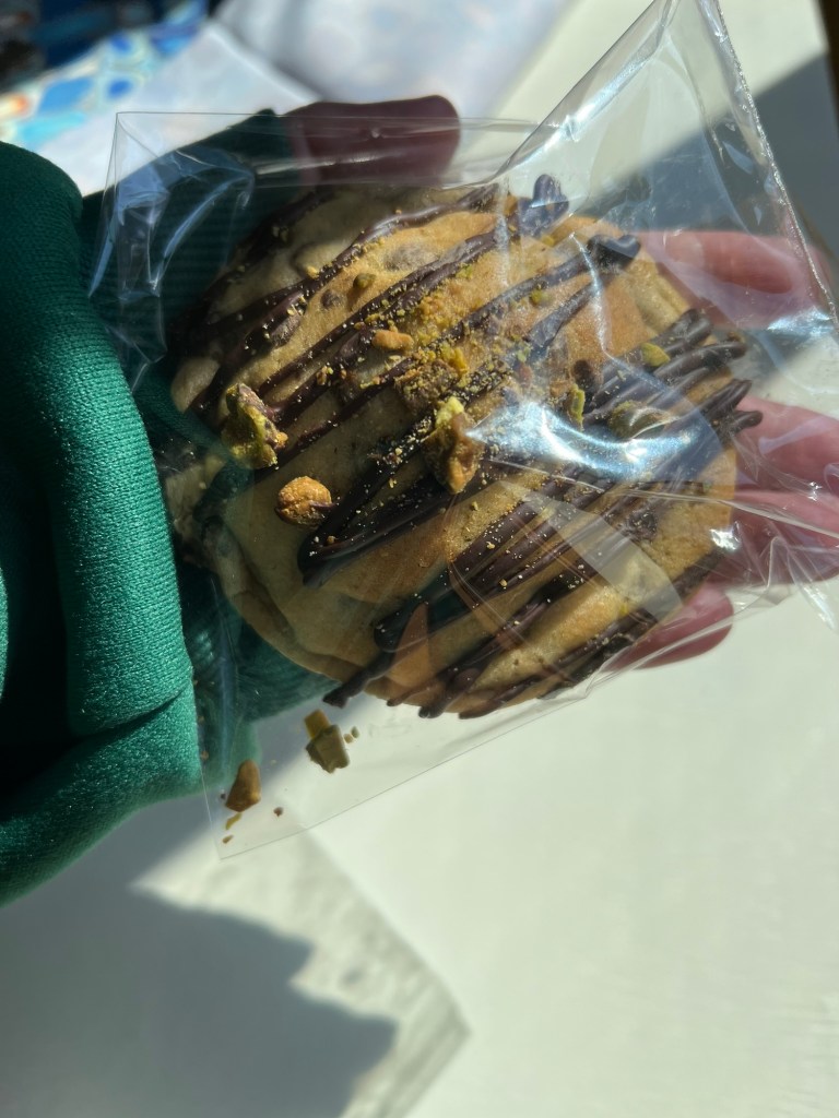 My favorite thing from this trip was 100% the Dubai cookie. I think I could have eaten an entire pan of those bad boys!! I would have been sick, for sure, but I think it would have been worth it. The cookie is soft, and bursting with chocolate chips, and the pistachio paste filling was so so delicious…. Rich but not too rich.