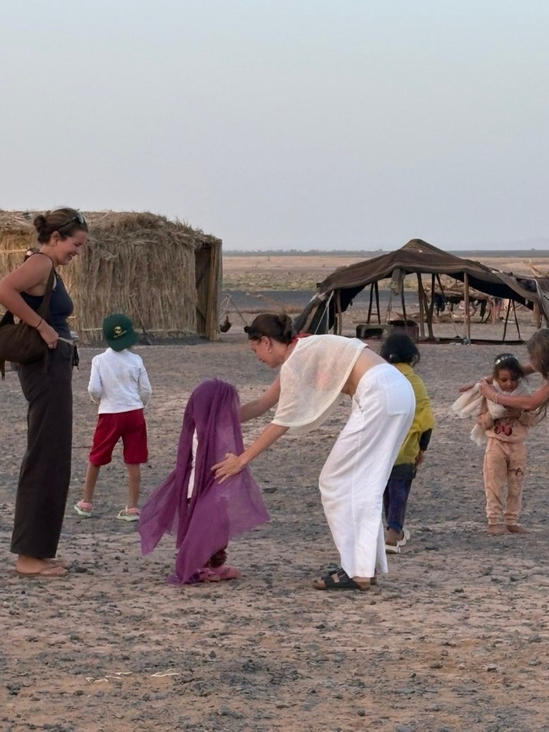 At the end of the trip, Macey and her friends gave the Nomadic girls camping nearby their head scarves.