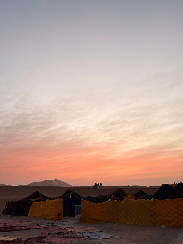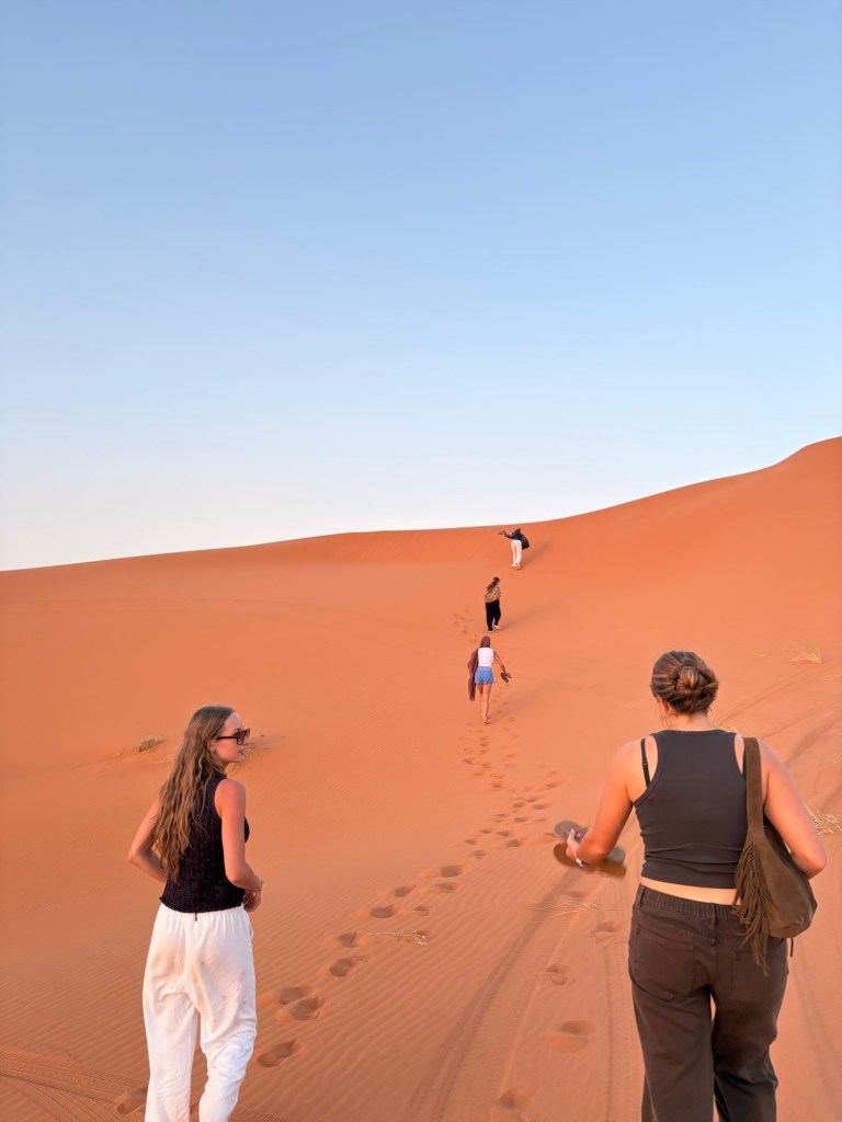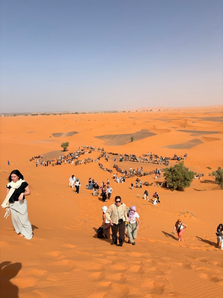 One of the highlights of the trip to Morocco was a two-night stay in the desert. Students were treated to an hour-long (crazy) bus ride, Jeep ride, camel ride, and hike to arrive at their final camp destination. I may have the transportation wrong, but you get the idea. It was a haul. They did ride a bus. They did ride a Jeep. They did ride camels. They did hike. It just may not have been all at once lol.