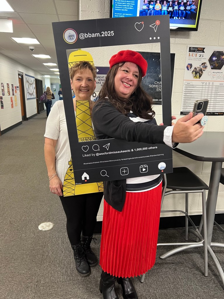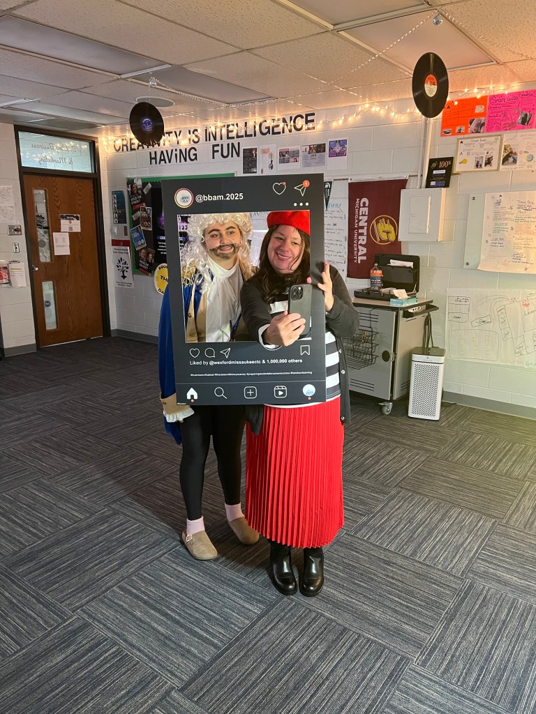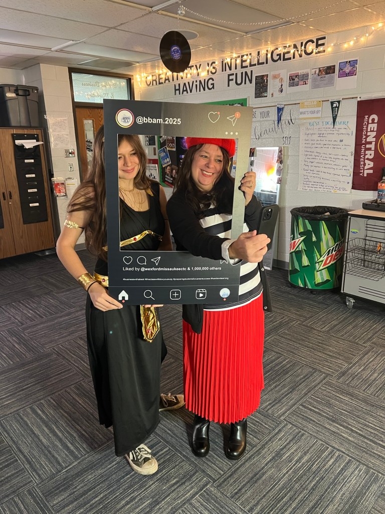 Today is Halloween, and even though I teach high school students, they still get a kick out of dressing up…and seeing their teachers dress up. I’m not the type of person that really enjoys dressing up, but my coworker, and store manager, is. After 22 Halloweens together, we have reached an agreement. She asks me what I’m willing to dress up as, and we go with that lol! I usually try to pick a costume that has SOMETHING To do with marketing or business in general. This year, I selected Emily in Paris.
