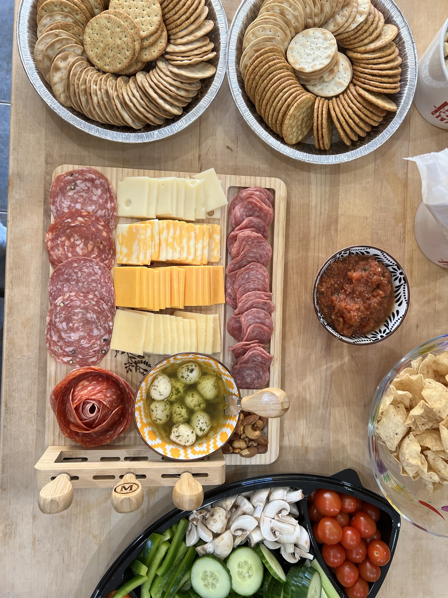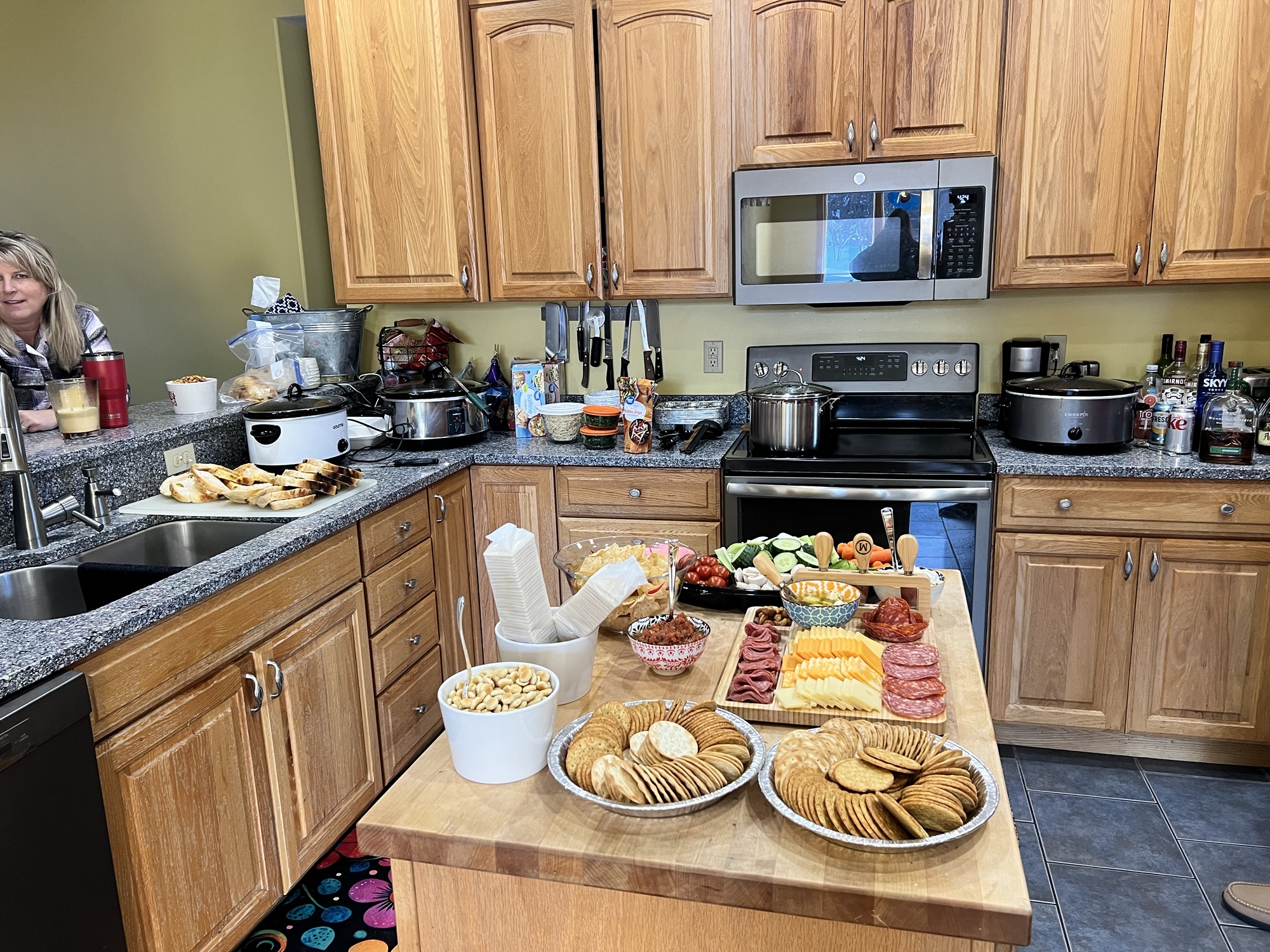 There were ten of us, a charcuterie board, 4 crocks of soup, 2 loaves of sourdough, and mini donuts for dessert. We could have been stranded in our house for two weeks and still wouldn’t have put a dent in the food.